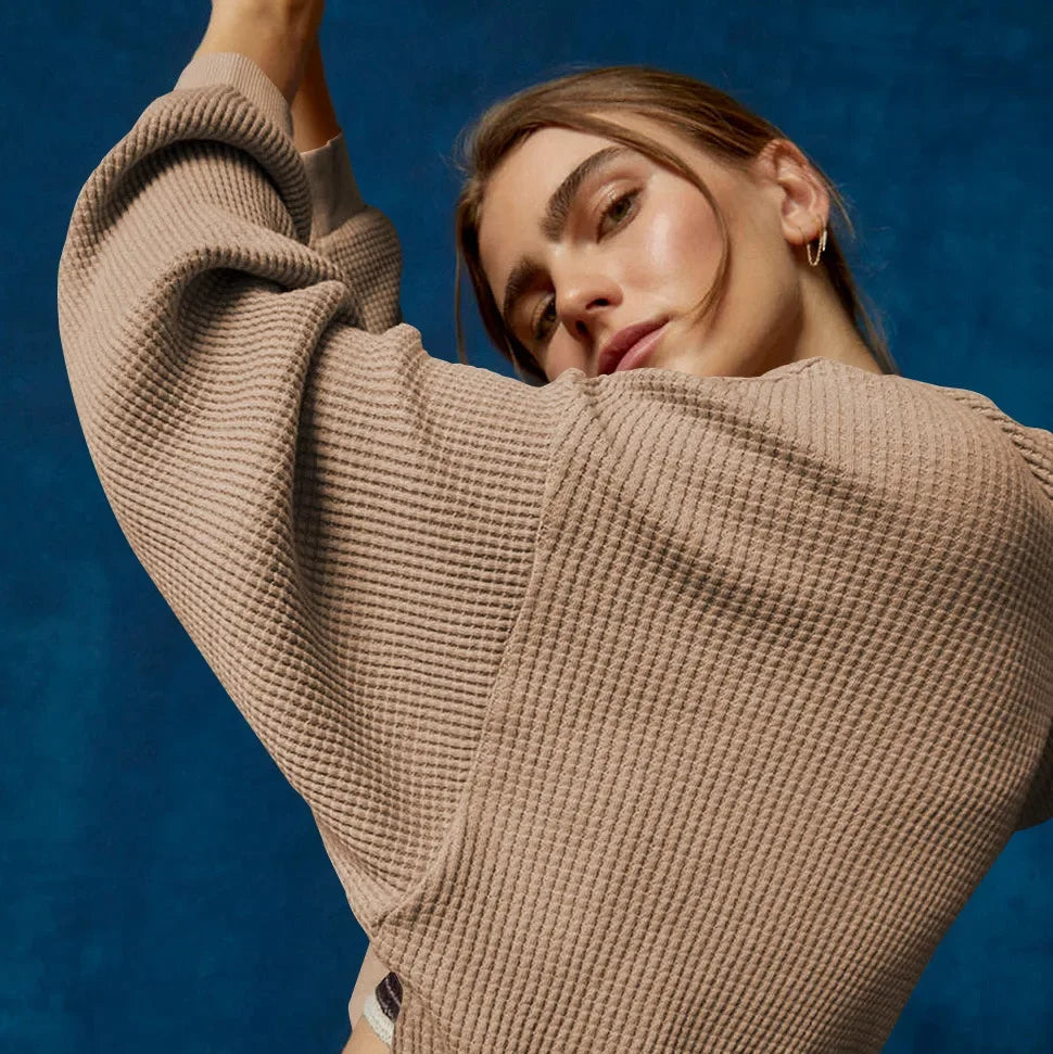 Soft and tactile against the skin, with enough substance to feel cozy without weight. The knit has a lively texture that adds interest without bulk, and the relaxed silhouette moves with you throughout the day. It’s easy to wear, even easier to style—everything you want in a laid-back yet considered layer.